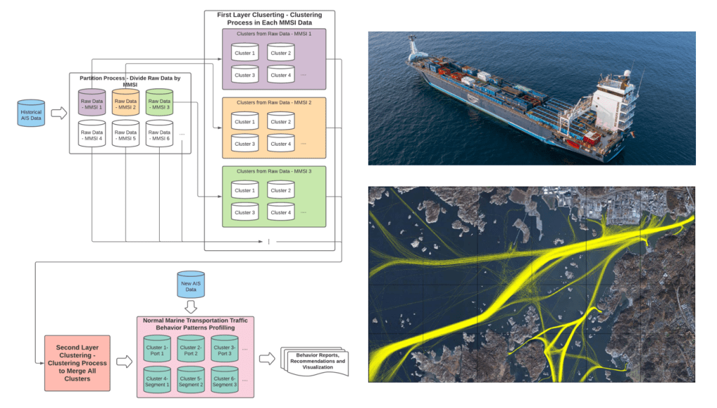 Today, maritime transportation represents substantial international trade. Sustainable development of marine transportation requires systematic modeling and surveillance for maritime situational awareness. In this research, we present an enhanced density-based spatial clustering (DBSCAN) method to model vessel behaviors. The proposed methodology enhances the DBSCAN clustering performance by integrating the Mahalanobis Distance metric that considers the correlations of the points representing the locations of the vessels. The clustering method is applied to historical Automatic Identification System (AIS) data and generates an action recommendation tool and a model for detecting vessel trajectory anomalies.